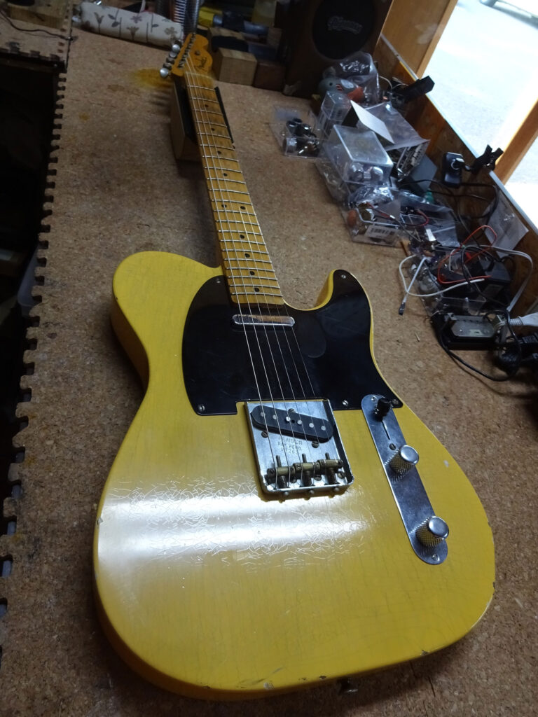 テレキャスターにはハイパスフィルターが付いていることが多いですが、付けてあるコンデンサーの容量の関係で、ボリュームを絞るとスイッチが入ったようにカリカリの音になってしまいます。
