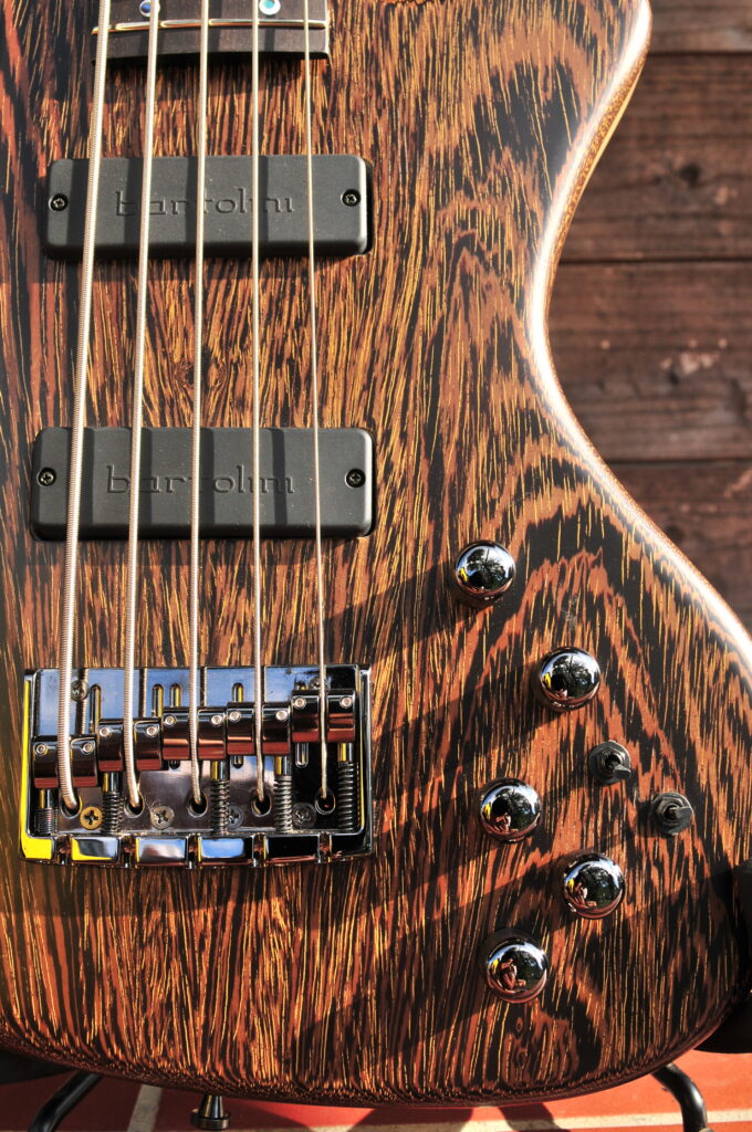 バルトリーニPUとESPシナモンで多彩な音つくりが可能。